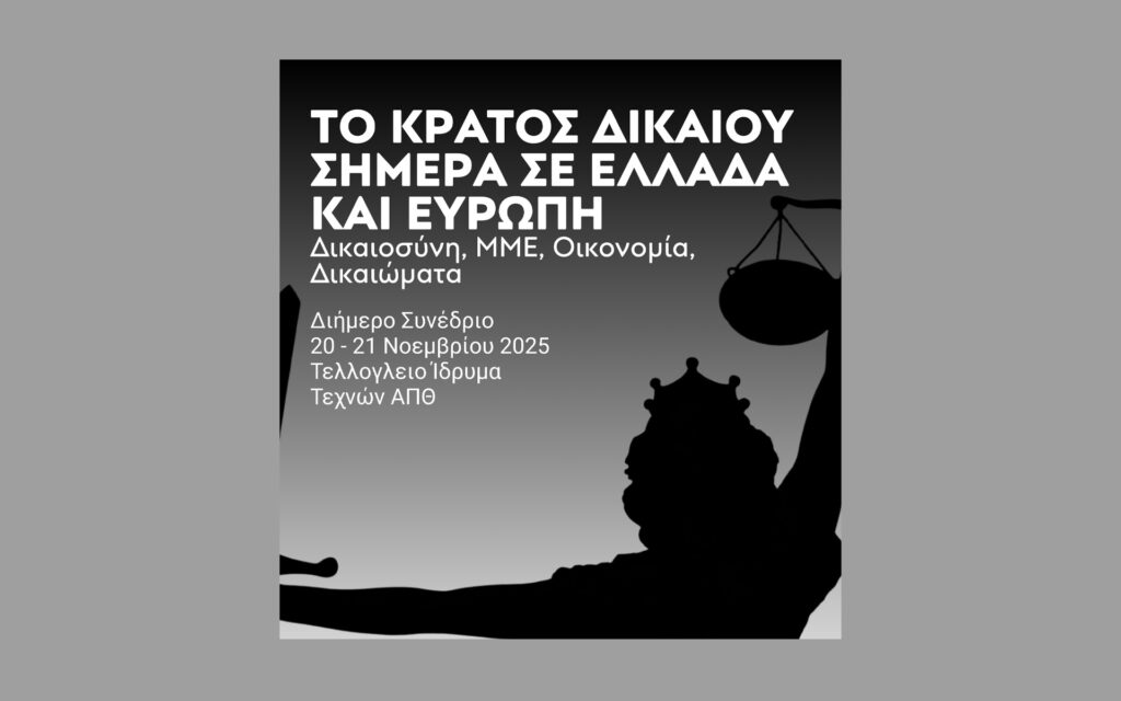 Η DEMOTRUST διοργανώνει το διήμερο συνέδριο με τίτλο «Το κράτος δικαίου σήμερα σε Ελλάδα και Ευρώπη: Δικαιοσύνη, ΜΜΕ, Οικονομία, Δικαιώματα», που θα πραγματοποιηθεί στις 20 και 21 Νοεμβρίου 2025 στο Τελλόγλειο Ίδρυμα Τεχνών ΑΠΘ.Η DEMOTRUST είναι ένας α …