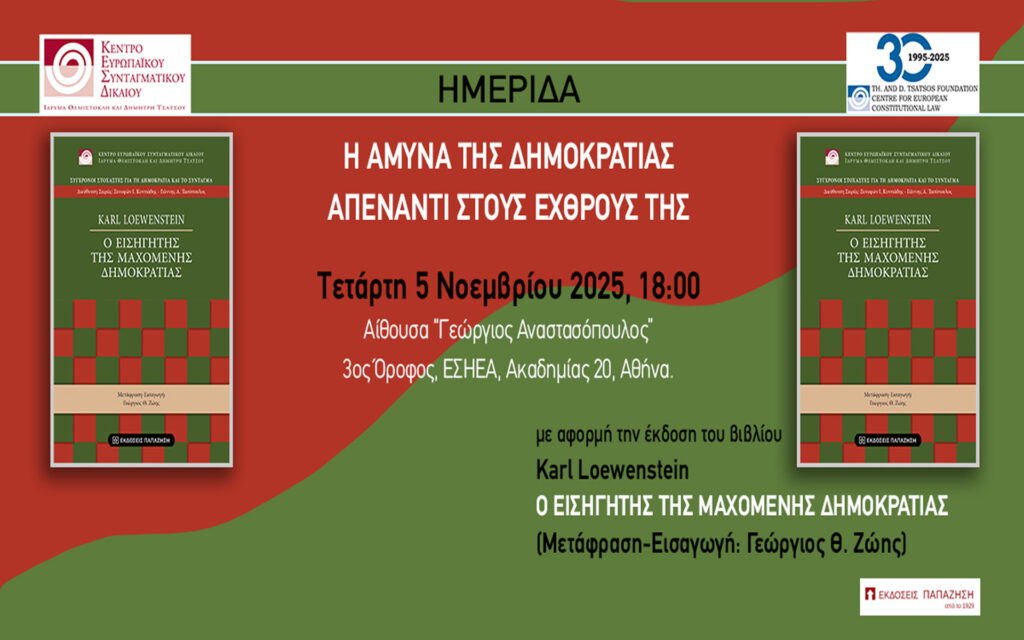 Ημερίδα: Η άμυνα της δημοκρατίας απέναντι στους εχθρούς της, 5.11.25