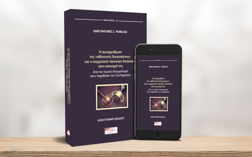 Νέα Κυκλοφορία: Κωνσταντίνος Σ. Ρέμελης, Η αυτορρύθμιση της «αθλητικής δικαιοσύνης» και η συμμετοχή τακτικών δικαστών στην απονομή της. Από τον νομικό πλουραλισμό στην παραβίαση του Συντάγματος