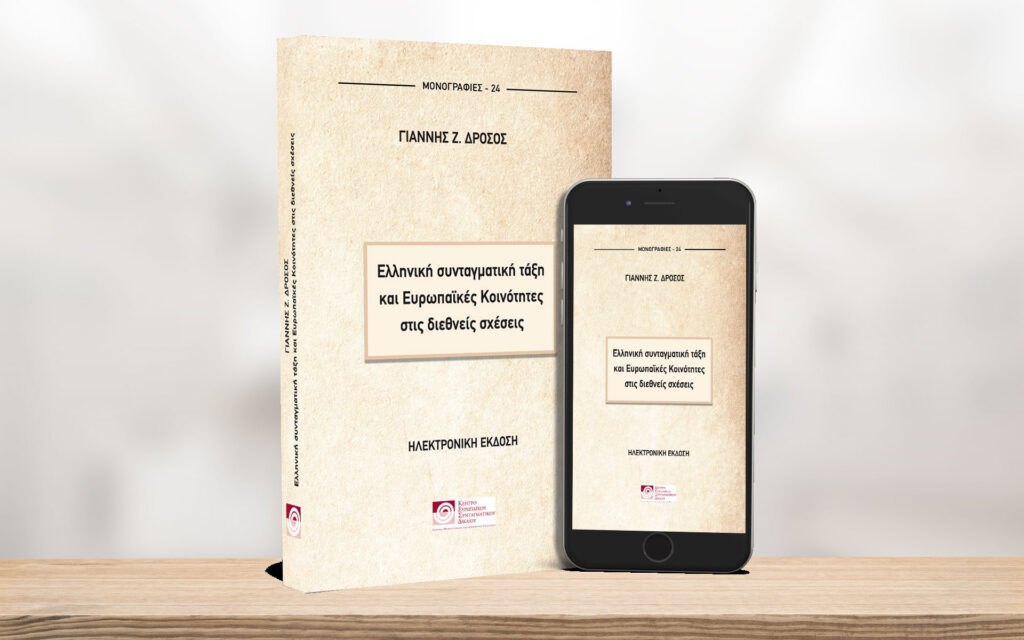 Το Κέντρο Ευρωπαϊκού Συνταγματικού Δικαίου – Ίδρυμα Θεμιστοκλή και Δημήτρη Τσάτσου και το e-ΠΟΛΙΤΕΙΑ επανεκδίδουν, σε μορφή e-book ελεύθερης πρόσβασης με νέο πρόλογο, τη μονογραφία του Ομότιμου Καθηγητή της Νομικής Σχολής Αθηνών Γ. Ζ. Δρόσου, με τίτλο «Ελληνική συνταγματική τάξη και Ευρωπαϊκές Κοινότητες στις διεθνείς σχέσεις».