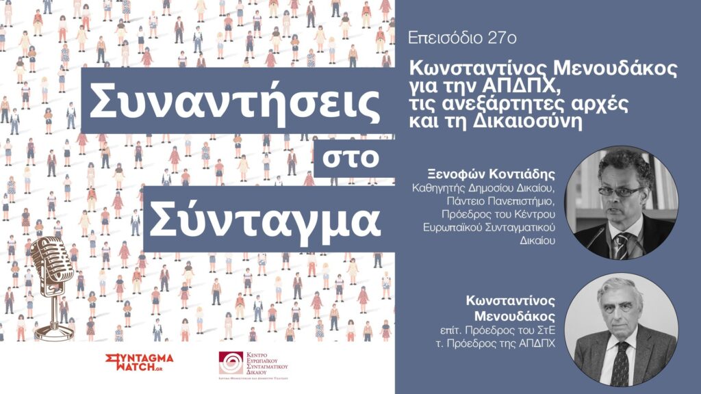 Podcast | Συναντήσεις στο Σύνταγμα Ε27: Ο Κωνσταντίνος Μενουδάκος για την ΑΠΔΠΧ, τις ανεξάρτητες αρχές και τη Δικαιοσύνη