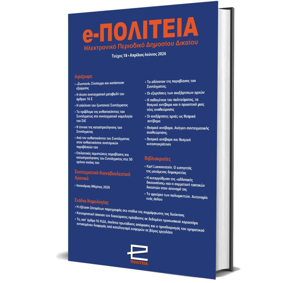 Το Κέντρο Ευρωπαϊκού Συνταγματικού Δικαίου – Ίδρυμα Θεμιστοκλή και Δημήτρη Τσάτσου και το e-ΠΟΛΙΤΕΙΑ παρουσιάζουν, σε μορφή e-book ελεύθερης πρόσβασης, τη μονογραφία του Καθηγητή της Νομικής Σχολής του ΔΠΘ Κ. Ρέμελη, με τίτλο «Η αυτορρύθμιση της “αθλητικής δικαιοσύνης” και η συμμετοχή τακτικών δικαστών στην απονομή της. Από τον νομικό πλουραλισμό στην παραβίαση του Συντάγματος»