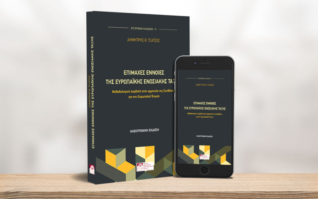 Το Κέντρο Ευρωπαϊκού Συνταγματικού Δικαίου – Ίδρυμα Θεμιστοκλή και Δημήτρη Τσάτσου και το e-ΠΟΛΙΤΕΙΑ παρουσιάζουν, σε μορφή e-book ελεύθερης πρόσβασης με νέο Πρόλογο, το κλασικό έργο του Δημήτρη Θ. Τσάτσου, με τίτλο «Επίμαχες έννοιες της ευρωπαϊκής ενωσιακής τάξης»